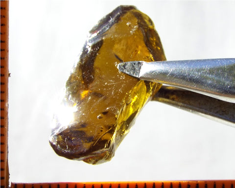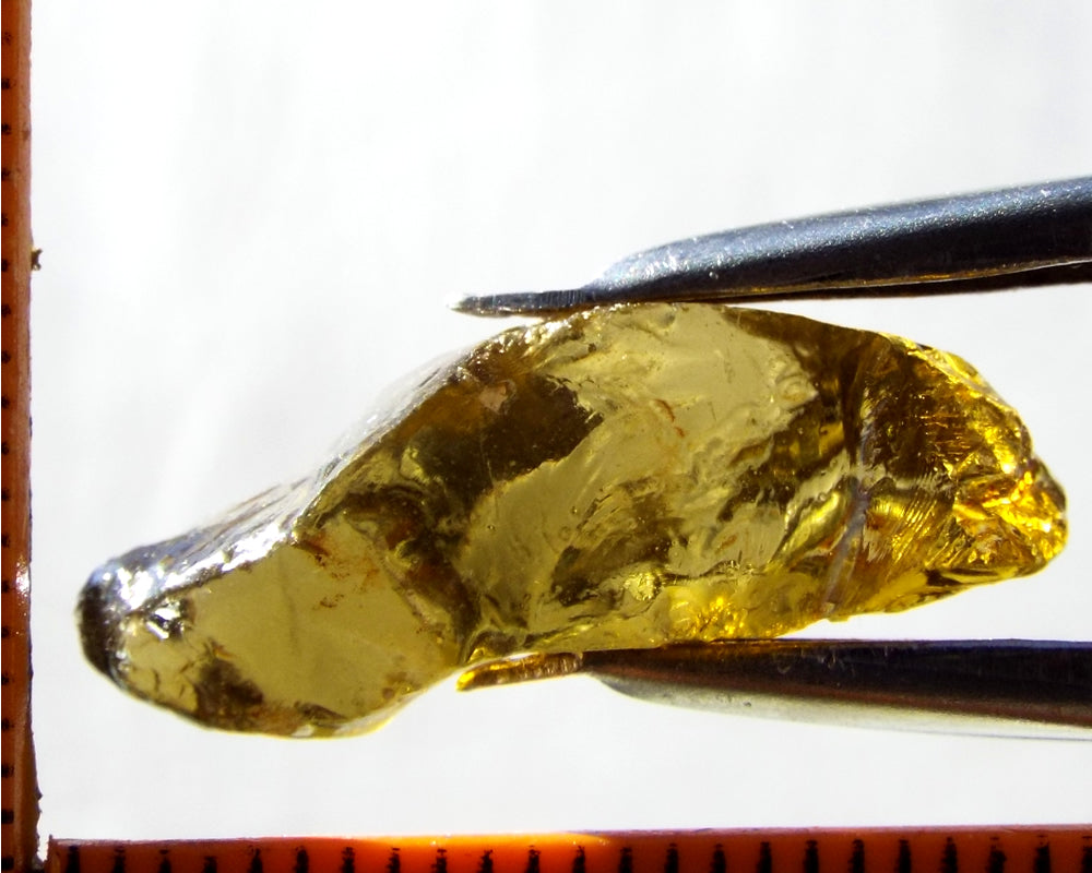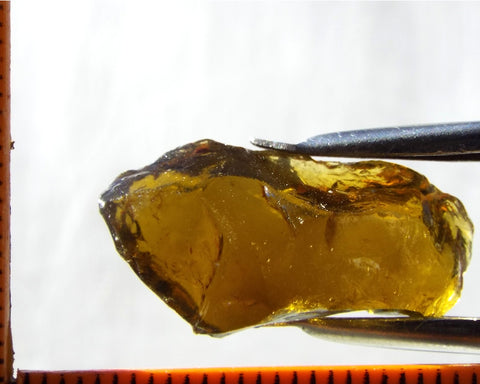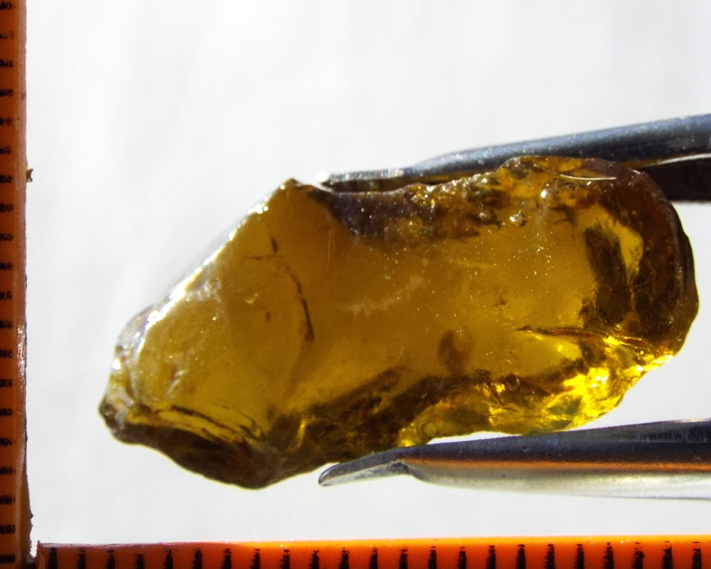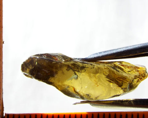 An interesting light ‘straw-brown’ 'C' axis stone with lighter "A" axes, from Tanzania. These stones have been referred to as "Sunset" tourmalines as the colour varies from greens to yellows to browns and all colour variations in between. Strongly dichroic, it is sometimes possible to incorporate the two colours in the cut stone with unusual results.