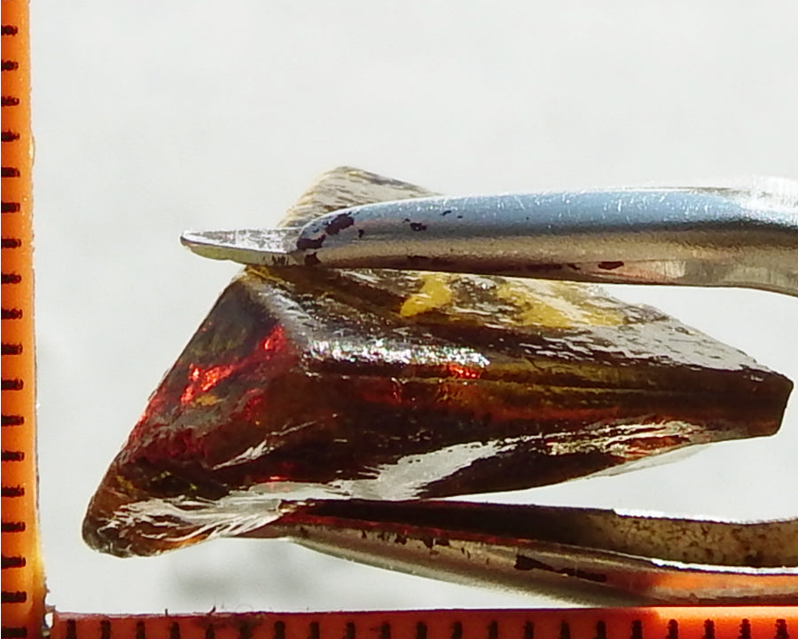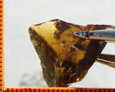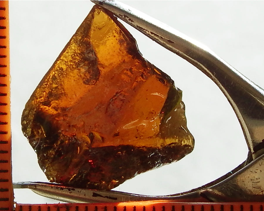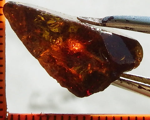 An interesting strong ‘burnt orange’ coloured stone with slight green tone from Tanzania, open  'C' axis. These stones have been referred to as "Sunset" tourmalines as the colour varies from greens to yellows to browns and all colour variations in between. Strongly dichroic, it is sometimes possible to incorporate the two colours in the cut stone with unusual results.