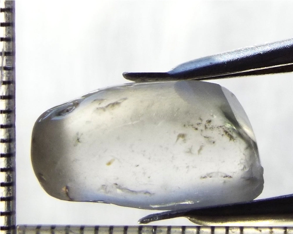 A clear, colourless, river-worn Zircon from Tanzania. Note that slight surface discolouration may be found on some stones, but it is not internal.