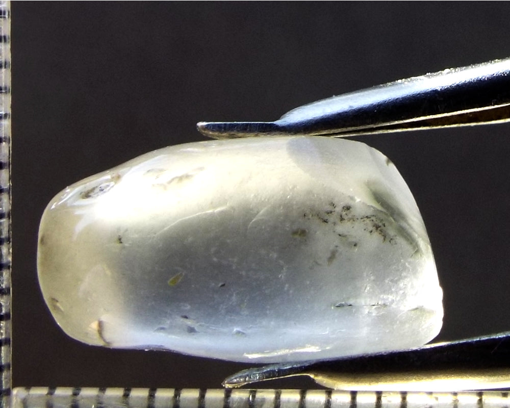 With a hardness of around 7.5 on the Moh’s scale and a high double-refraction of 1.925-1.984, this will cut a superb, very brilliant gem.