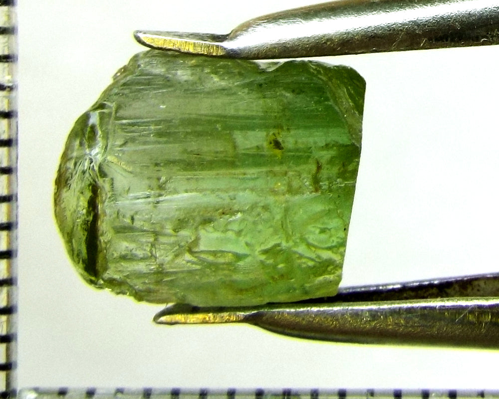 A  bright strong medium mint-green stone from Nigeria, showing a green-yellow  'C' axis.