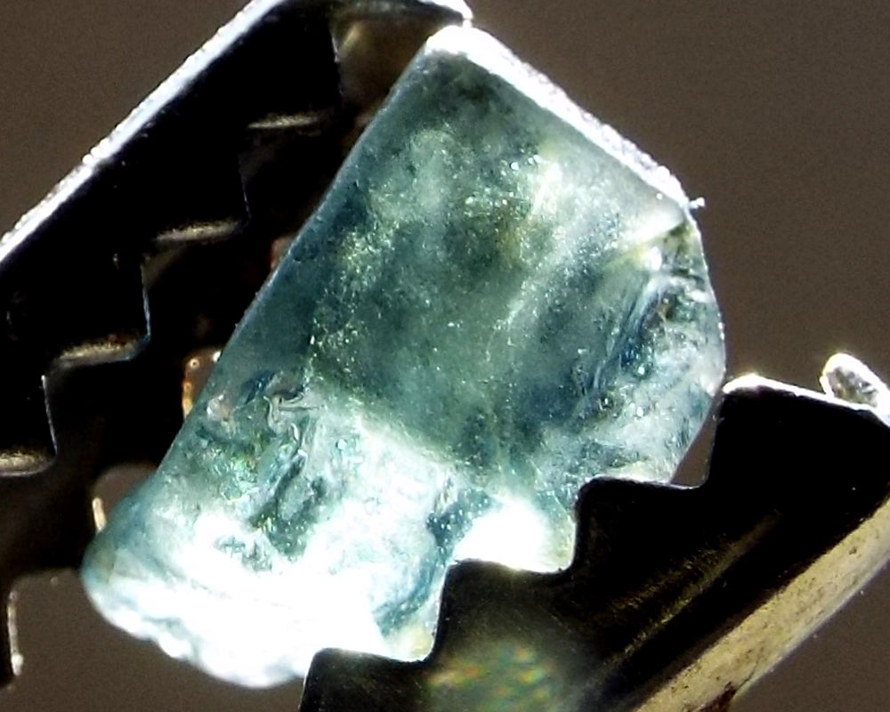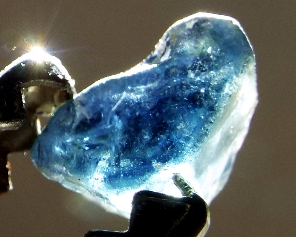 From a new discovery in Nigeria come these Mambilla river-worn stones. The stones show a strong blue colour down the ‘C’ axis and a lighter blue tinged with green down the ‘A’ axes. Some banding is evident in some material. The surface of the stone is quite rough so an accurate grading is not possible. However, I have graded them AA+ to AAA. Unlike many of the Sapphires from the earlier deposits in Mambilla, these stones show a lighter blue colour and very attractive gems can be cut from the rough. Sapphire, being very dichroic, is a difficult stone to photograph so photos have been taken in sunlight with different backgrounds to try to show the colours.