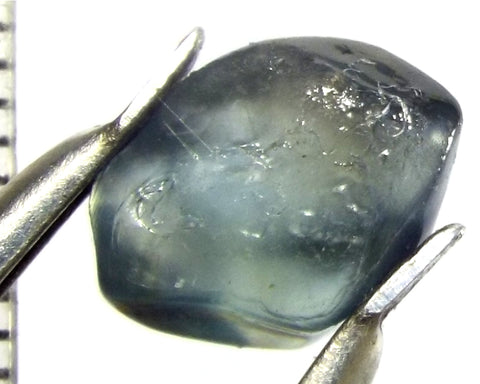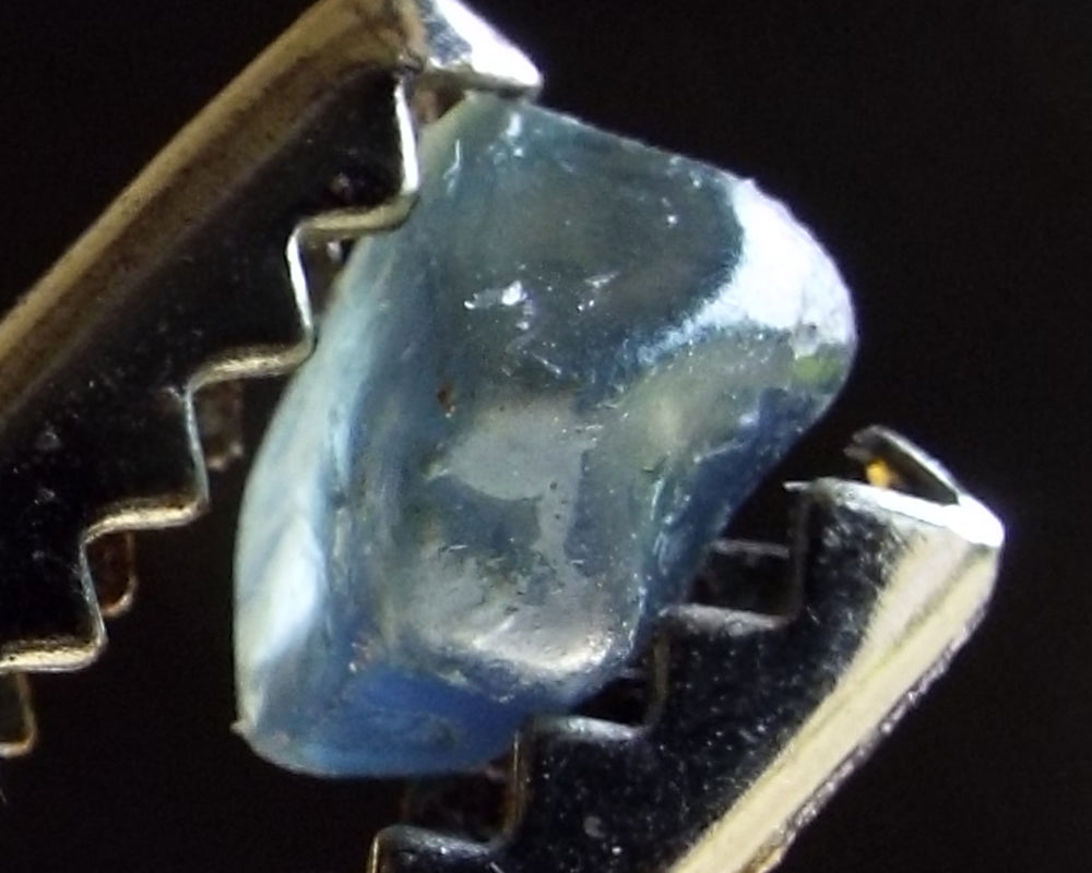 From a new discovery in Nigeria come these Mambilla river-worn stones. The stones show a strong blue colour down the ‘C’ axis and a lighter blue tinged with green down the ‘A’ axes. Some banding is evident in some material. The surface of the stone is quite rough so an accurate grading is not possible. However, I have graded them AA+ to AAA. Unlike many of the Sapphires from the earlier deposits in Mambilla, these stones show a lighter blue colour and very attractive gems can be cut from the rough. Sapphire, being very dichroic, is a difficult stone to photograph so photos have been taken in sunlight with different backgrounds to try to show the colours.