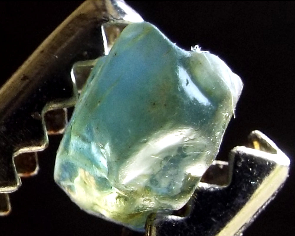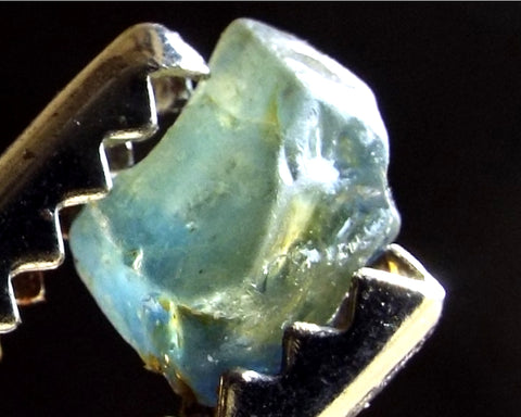 From a new discovery in Nigeria come these Mambilla river-worn stones. The stones show a strong blue colour down the ‘C’ axis and a lighter blue tinged with green down the ‘A’ axes. Some banding is evident in some material. The surface of the stone is quite rough so an accurate grading is not possible. However, I have graded them AA+ to AAA. Unlike many of the Sapphires from the earlier deposits in Mambilla, these stones show a lighter blue colour and very attractive gems can be cut from the rough. Sapphire, being very dichroic, is a difficult stone to photograph so photos have been taken in sunlight with different backgrounds to try to show the colours.
