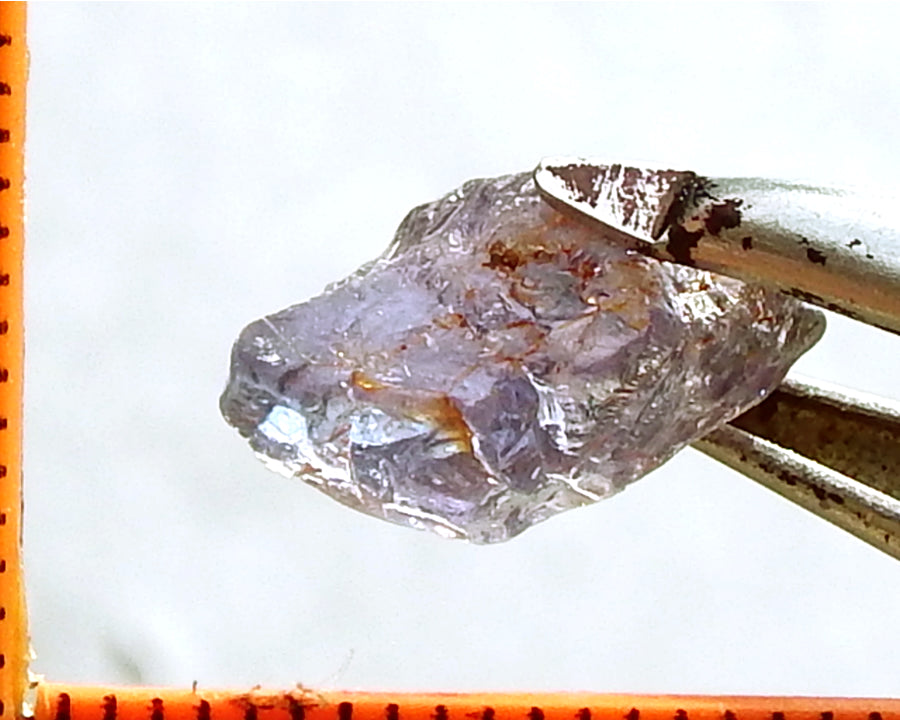 A typical Umba Sapphire from Tanzania. These stones are unique in the range of colours shown, usually in the blue to purple range sometimes pink and green. The Sapphires not only show a strong dichroism - that is, they show two distinct colours - many, but not all, of the Umba Sapphires also show a strong to medium 'colour-change' depending whether they are observed in daylight or incandescent light. It is this phenomena which makes they extremely difficult to photograph as the camera usually shows the color-change in incandescent light.