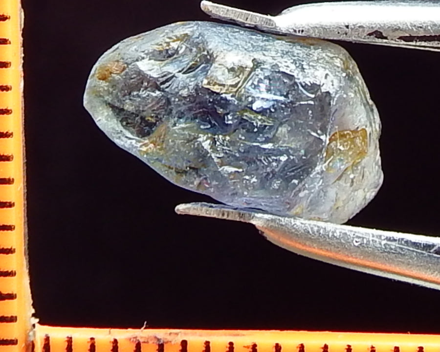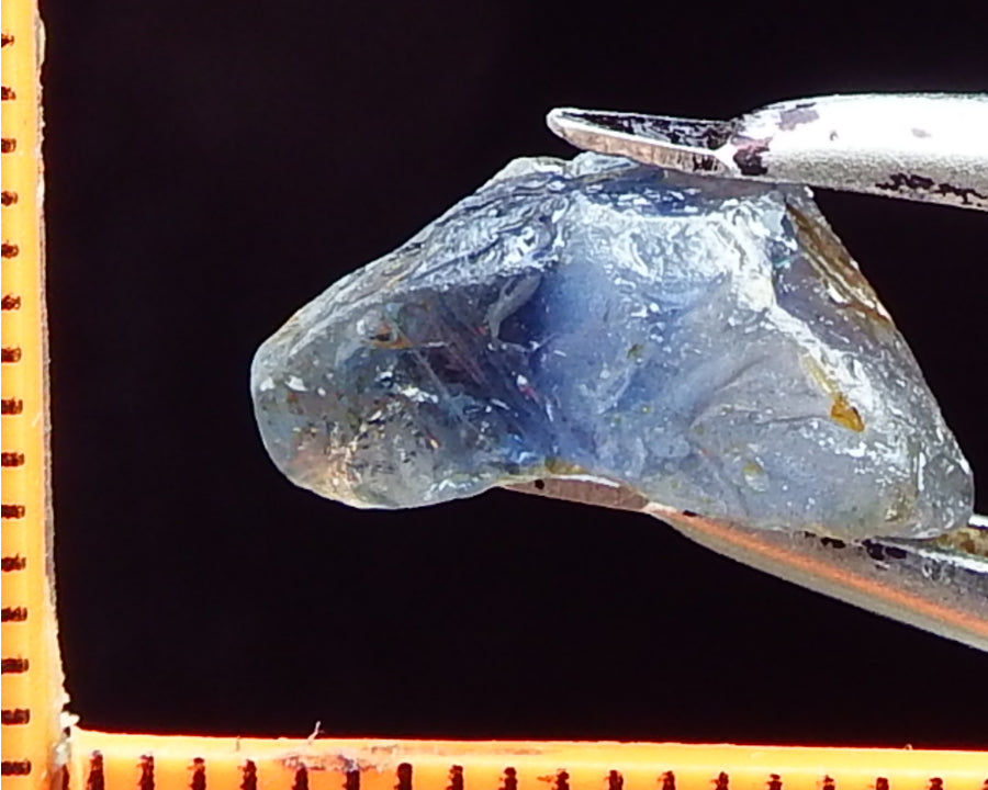 A typical Umba Sapphire from Tanzania. These stones are unique in the range of colours shown, usually in the blue to purple range sometimes pink and green. The Sapphires not only show a strong dichroism - that is, they show two distinct colours - many, but not all, of the Umba Sapphires also show a strong to medium 'colour-change' depending whether they are observed in daylight or incandescent light. It is this phenomena which makes they extremely difficult to photograph as the camera usually shows the color-change in incandescent light.