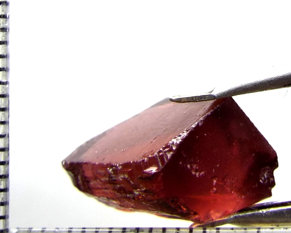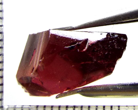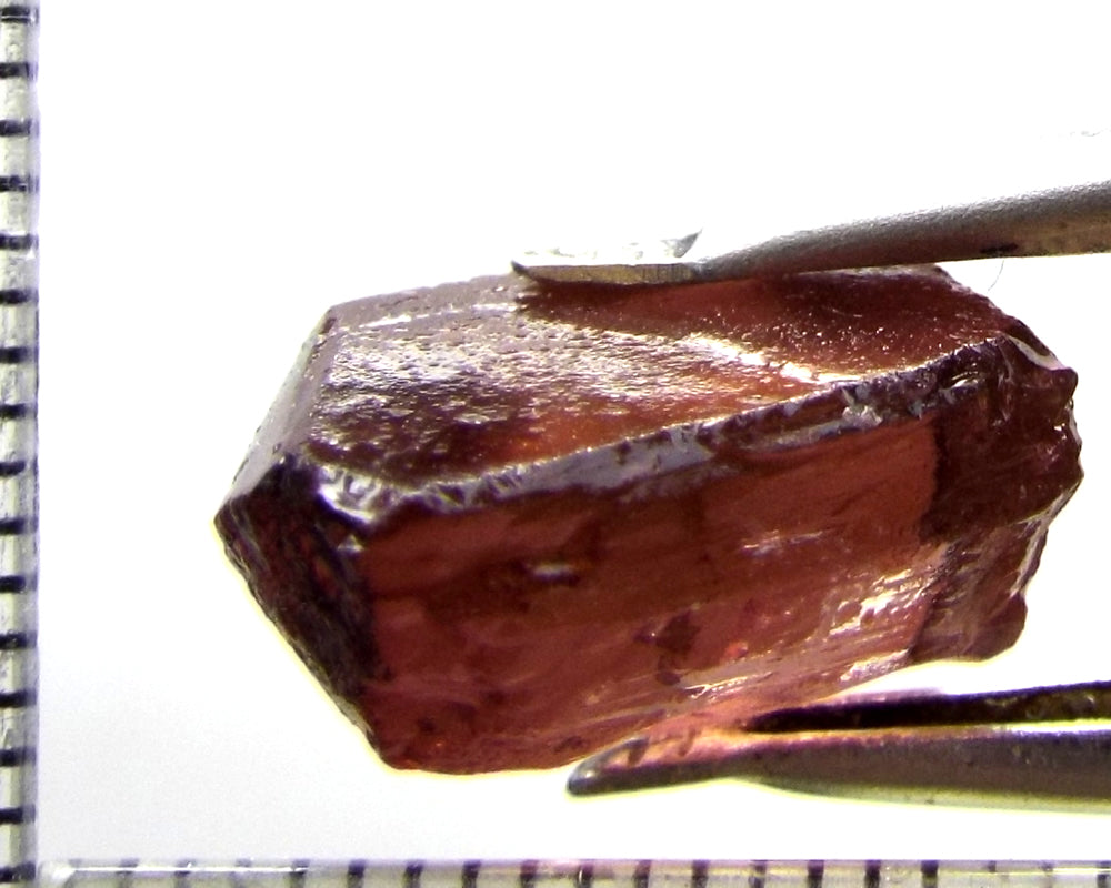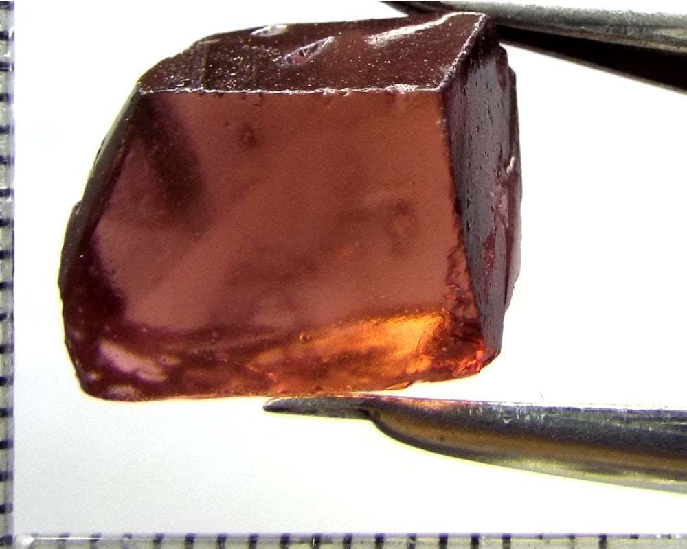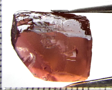 A bright rich, medium-strong pink-purple stone from Mozambique, showing a lighter tone on the "A" axes and a stronger colour down the "C" axis. The stone, weighing 13.67 cts, has been ground or cobbed clean and is graded AAA.